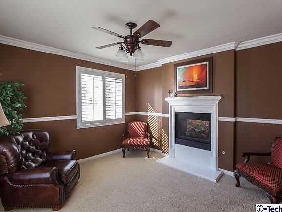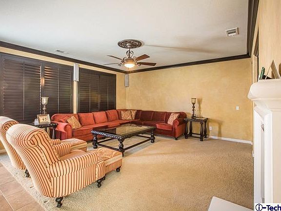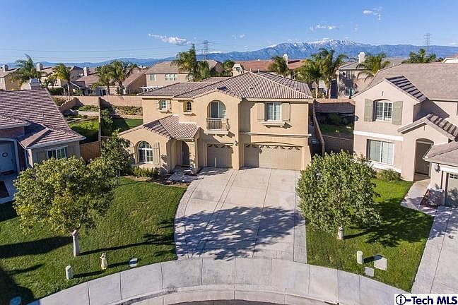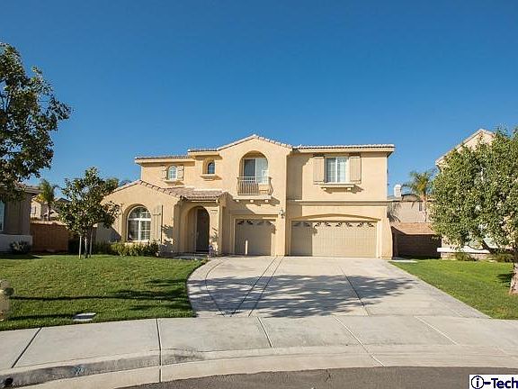 A beautiful Mediterranean home on a cul-de-sac built in 2006. This comfortable 2 story home offers 2 bedrooms downstairs and 4 bedrooms upstairs. The entry offers ceramic tiled flooring which leads to the dining area. The gourmet kitchen with ceramic flooring, center island and granite counter tops and an eating area. The kitchen opens to a spacious family room with a fireplace and custom built in cabinetry. There is a cozy library with a fireplace shared with the adjoining living room, on the first level. The master suite is large with a huge walk in closet and a master bath built for comfort and convenience. Enjoy Southern California living in the large back yard with plenty of grassy area.