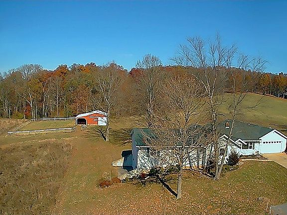 This 4-bedroom, 4-bath plus 2-half bath, house is located on a scenic 18 acres. Its open concept floor plan is great for entertaining! The living room features a beautiful picture window looking out at the wildflower fields. The eat-in kitchen features solid-surface countertops, luxury vinyl flooring, and a window over the sink to enjoy the view of the backyard. The formal dining room is large enough to seat 12, and has French doors leading into the sunroom. The family room has an attached full bath and spacious closet, making it perfect as an in-law suite. Through the backdoor from the sunroom is a lovely deck with bench seating and a fire pit. The owner suite is spacious enough for a king-size bed, large dressers, and a cozy reading area, and has a large walk-in closet and attached bath. Three additional walk-in closets on the main level provide ample storage. The lower level recreation room is the perfect size for a pool table or ping-pong table, and another set of French doors lead outside to a patio. The roof was replaced in 2018 with new gutters and downspouts, and new windows were installed in 2019. The house has 2 zones for HVAC, with electric furnaces and heat pumps. Most rooms were freshly painted recently, making this home move-in ready! The 18 acres are alive with wildflower fields, woods, and pasture. The machine shed (37 ft by 32 ft) has a concrete floor and is large enough for 2 mid-size tractors plus smaller equipment and/or hay bales. The attached run-in shed opens inside the fenced-in paddock, built for horses. The rural setting of this property offers gorgeous sunsets and frequent sightings of wildlife. For private showing: call us at 812-275-1957