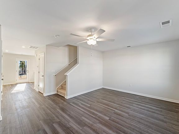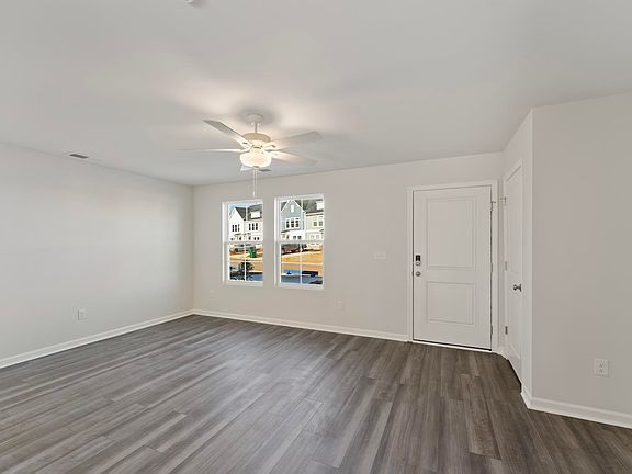 This charming three-bedroom and two-and-one half bath townhome features a large family room, open kitchen and eat-in breakfast area plus agenerous-sized pantry. The first floor also features a powder bathroom and convenient laundry access, along with many upgrades including: luxury vinyl plank flooring on the main level, granite countertops, stainless steel appliances, shaker-style cabinetry, tankless water heater, and more! All three bedrooms are located upstairs with two bathrooms, and the primary bedroom features a large walk-in closet, an ensuite with a double sink vanity, and a walk-in shower. Outside offers a large patio and extra storage closet. Enjoy maintenance-free living with an irrigation system, lawn, and exterior home maintenance. We also have a place for your furry friends to enjoy in the community at our dog park.