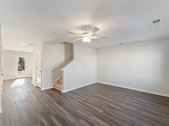 This charming three-bedroom and two-and-one half bath townhome features a large family room, open kitchen and eat-in breakfast area plus a generous-sized pantry. The first floor also features a powder bathroom and convenient laundry access, along with many upgrades including: luxury vinyl plank flooring on the main level, granite countertops, stainless steel appliances, shaker-style cabinetry, tankless water heater, and more! All three bedrooms are located upstairs with two bathrooms, and the primary bedroom features a large walk-in closet, an ensuite with a double sink vanity, and a walk-in shower. Outside offers a large patio and extra storage closet. Enjoy maintenance-free living with an irrigation system, lawn, and exterior home maintenance. We also have a place for your furry friends to enjoy in the community at our dog park.