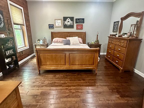 **NEW PRICE POINT** Stunning one of a kind home on 8.9 unrestricted acres and stocked pond! This home was built in 2019 by one of the areas premier builders. From the moment you walk in you take notice of the knotty pine wood with a chestnut finish along with 16 foot ceilings and custom floating shelves from local wood. The home has a custom kitchen with soft close drawers to a double pantry with granite countertops. The master bedroom is a very large room with multiple walk in closets with barn doors. The master bath has a double vanity along with a man made marble shower and ceramic tile flooring. Hardwood flooring and 10 foot ceilings in the bedrooms. 36” handicap accessible doors. The front and rear porches are stamped concrete overlooking the pond. Vinyl clad double hung windows from WinTech. The home features all amenities with city water, septic, natural gas and high speed internet. The land has good mixed timber! Not far from the Tennessee River.