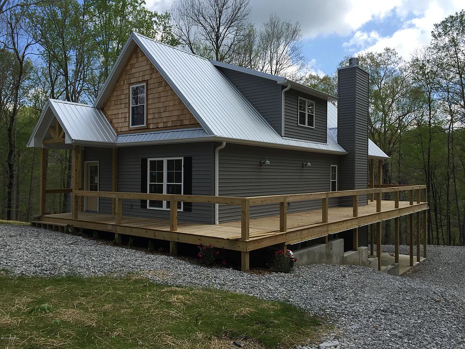Carrolls Cove is one of the newest developments on Nolin Lake and this stunning new custom built home on a choice lake front lot is nearing completion. The home features approximately 2,275 square feet of living space with 4 bedrooms, 3 full baths, 2 fireplaces, and a finished walkout basement. This amazing home is not your typical builder grade home. The first floor great room features an extra large wood burning fireplace surrounded by unique reclaimed barn wood and is open to the beautiful custom kitchen featuring white cabinetry, granite countertops, farmhouse style sink, stainless steel appliances and ceramic tile flooring. The master bedroom is located on the first floor and has a walk-in closet and attached full bath with granite vanity top. Gorgeous hardwood floors and ceramic tile are found throughout this home, making it easy to clean (no carpet anywhere). The finished walk-out basement has a large family room with a 2nd fireplace (gas), a large bedroom with a walk-in closet, a full bath and a 300 sq ft garage for storing a UTV and mower. The exterior features a covered deck overlooking the water and docks. A NEW DOCK SLIP IS ALREADY IN PLACE and is transferrable with COE approval.
