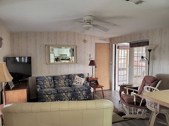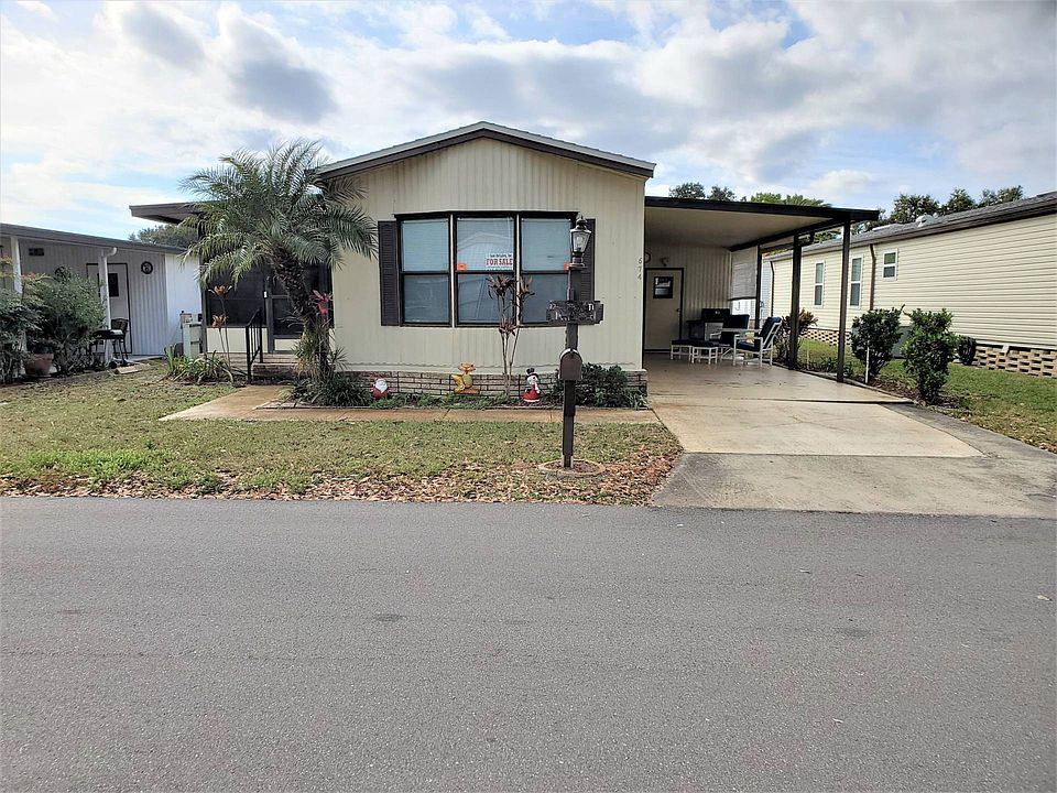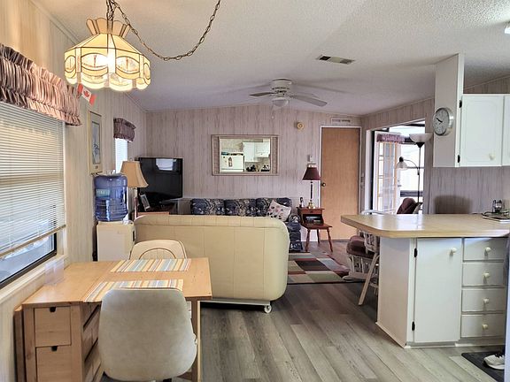 Looking for a singlewide in a great community with tons of activities. This is a 55+ gated community that is extremely active, fun. Don't let this pass you by. Hidden Golf Club is part of the combined CRF communities. Hidden Golf and Swiss Golf & Tennis is where you can enjoy an active community on the beautiful 1,000 acre Lake Henry with fishing pier and boat dock. This 1989 MERI is a 2 bedroom, 1 and 1/2 bath with much desired "split bedrooms" (one on each end of the home). The home is furnished and ready to call home. Snowbird or full-time, Hidden Golf Club is a great place to enjoy the Florida life in a nice clean, active community with tons of things to do. This home is ready to move in. You will enjoy the open concept with double doors that open to the Florida room (12 x 9.4) right off the living room (13 x 13). The home is 700 sq ft. with a convenient layout, laundry in the utility shed and new flooring. The roof is only 2 years old. The master bedroom (10 x 10.6) has a new bed, and the bathroom is has plenty of cupboard space as well as updated vanity/sink and stool. There is laminate flooring throughout so no worry with old carpet. You will find this a comfy layout, not too big and not too small. Be sure to watch the walk-through video and call to get all your questions answered. Hidden Golf and Swiss Golf & Tennis are highly active communities. There are 2 clubhouses, 2 pools, an onsite restaurant, exercise room, card room, billiard room, library, pro shop for the 18-hole executive golf course, shuffleboard, pickle ball, bocce ball and the list continues. There is a strong entertainment committee which provides local monthly shows, dances, dinners, cards, white elephant sales, golf cart parades and bingo. You can be as active as you like or just chill out by the pool overlooking a beautiful lake. Winter Haven, FL, is centrally located between both the Gulf and the East Coast beaches. The Orlando Airport is only 45 minutes away and so are many sports events, such as the Lakeland training camp. Disney World and Universal Studios are close enough to enjoy any time you feel like going. There is a never-ending array of outlet malls for shopping, dining and relaxing! So, whatever you like to do for entertainment, Central Florida is the place to live. Property address is 674 Century Lane, Winter Haven, FL 33881. Current lot rent is $455.89