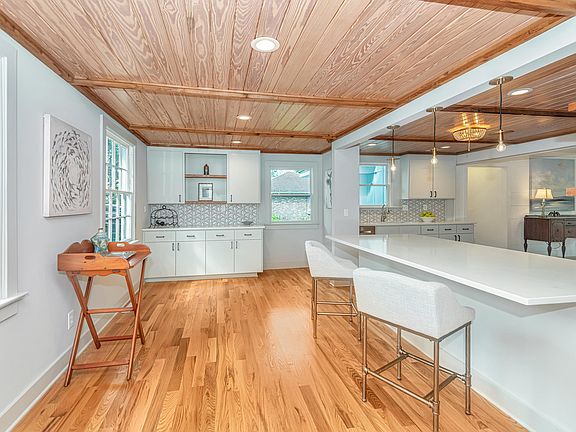 Original character with updated charm sets this renovated home in Old Mt Pleasant apart. Home was moved from Ft Moultrie to current 1/3 acre lot in the heart of the Coleman Blvd District in ~ 1948. House has been restored & additional square footage added creating a very current, open floorplan with a central kitchen. Beautiful wood ceiling with custom cedar trim highlights the original front rooms. Oversized great room with vaulted ceiling extends onto the 16x16 screen porch. Step down to a dining/living room that overlooks the peaceful koi pond with waterfall & lush tropical landscaping. Large, private office/home learning center/bonus room is on the 2nd floor. 1st floor Master bedroom suite added in 2012 with 2 closets and private laundry. 2nd bedroom with attached bath features a large walk in shower and 2nd laundry connection. 3rd bedroom is bright and cheery with a walk-in closet; 3rd full bathroom is 2 steps away. Original bedroom doors and 4 front windows were preserved. All other windows have been updated. Electrical and plumbing systems updated. Crawl space is encapsulated. Custom mahogany front door. Garage is fully equipped for a workshop. Garden sheds provide additional storage. High schools assignment may be between Wando and new Lucy Beckham HS.