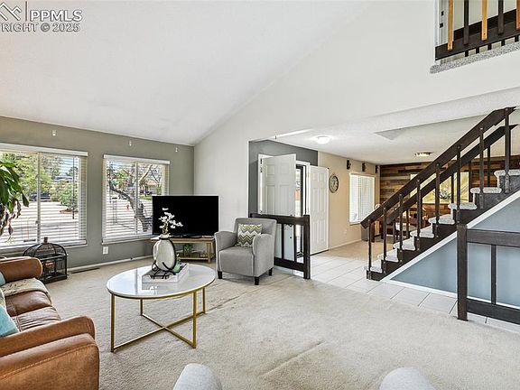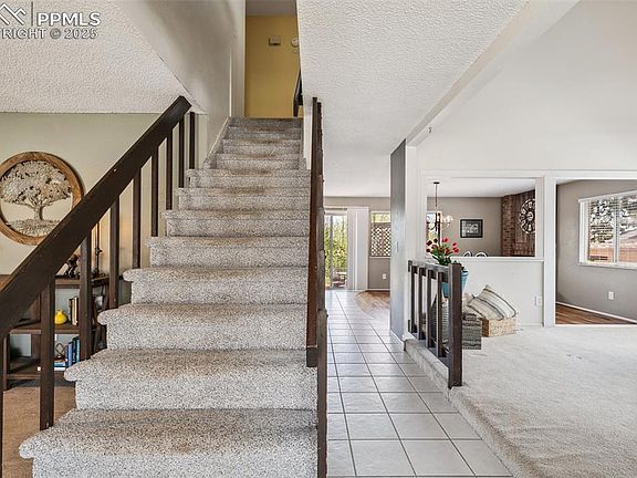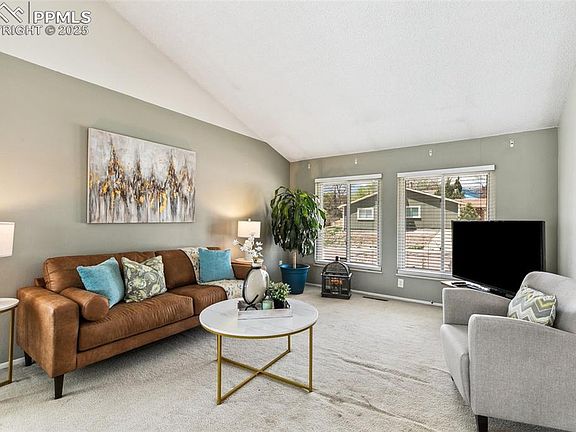 This affordable 4-bedroom, 3-bath home is a rare opportunity on the west side in the desirable Cheyenne Mountain area—just minutes from Quail Lake! All four bedrooms are conveniently located on the upper level, a hard-to-find feature that adds to the home's functionality. Enjoy mountain views from the front and city views from the back, along with central air for year-round comfort. While the home could benefit from some TLC, full of potential—a little elbow grease will go a long way! The main level offers a spacious great room and an open kitchen/dining area with a charming brick hearth and fireplace, perfect for gathering. A flexible front room can serve as a formal living space, home office, library, or den. The kitchen includes a pantry and stainless steel appliances, including a refrigerator, and the main-level laundry and powder room add everyday convenience. Upstairs, the generous primary suite features mountain views, two closets, and a private en-suite with dual vanities and a step-in shower. Three additional upper-level bedrooms each include a window and closet, plus a shared full bathroom. The oversized garage includes a service door to the backyard, where you’ll find a fully fenced yard with usable space, terracing, and room to garden or landscape. With no HOA and low property taxes, this west side gem offers unbeatable value in a coveted location. Don’t wait—homes in this area are hard to find!