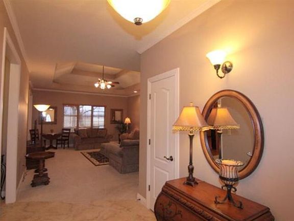 All brick, 3 bedroom 2 bath home! Offers spacious living room, hearth room with gas fireplace, desk area, kitchen with walk-in pantry, kitchen bar, plenty of cabinet/counter space, under cabinet lighting, convection oven and hardwood flooring. Master bedroom with tray ceilings, bath with walk-in shower, bidet, jetted tub, skylight, huge walk-in closet with built-in shelves. Other 2 bedrooms are also spacious with good size closets. Large laundry room with sink, folding counter & storage closet. Fenced back yard backs up to field with covered back patio with deck. Well maintained and in a great location!