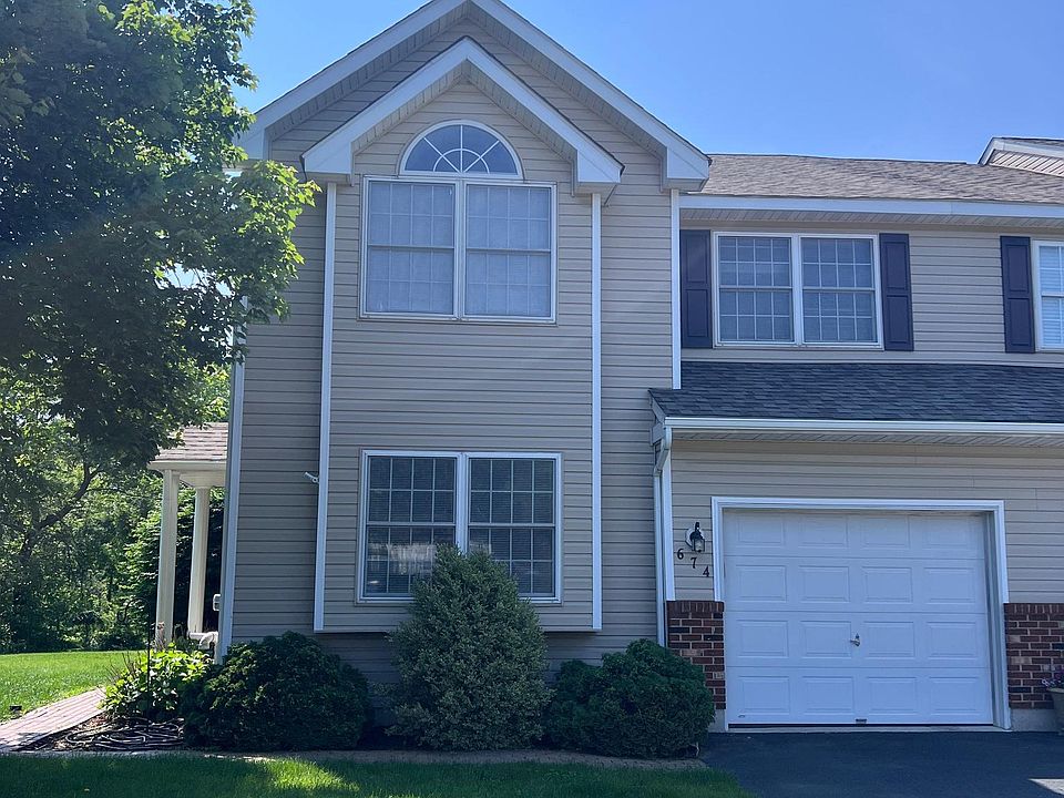 Spacious 3 BR, 2 1/2 BA twin with well-designed open floor plan. This home features hardwood flooring on first floor, new carpeting on upper level, newer roof, newer HVAC, garage EV charger, deck off of kitchen, plenty of natural lighting. Oversized bedroom suite offers plenty of living space with walk-in closet, private bathroom which includes shower stall, double sinks, jetted soaking tub and palladium window as well as cathedral ceilings in bedroom and bathroom. Finished basement adds additional living space as well as storage areas. Home is move-in ready and NO ASSOCIATION FEES!