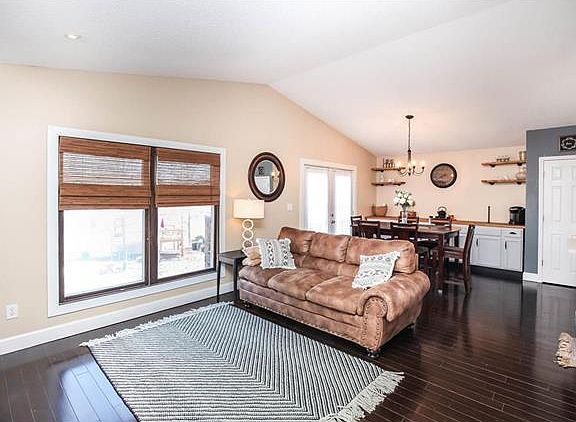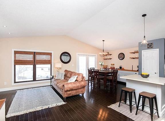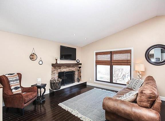 THIS IS THE LAKE ST. LOUIS LIFE! Stylishly contemporary residence for the modern pleasure-seeker. Cool, calm and sophisticated with a youthful edge, this functional home is enveloped in light and comfort. Neutral walls, bamboo wood floors and high ceilings create a style as timeless as the park like backyard view. A wall of grey cabinets, stainless appliances, and butcher block counter top complete the sleek and stylish kitchen that flows through to the dining room and deck. Contemporary lighting, wood fireplace in spacious living room. An expansive master bedroom retreat complete with large updated bath and deck access. You will be able to relax on your private balcony overlooking the neighborhood! Finished lower level includes massive movie room or family room (with projector included), an additional full bath and 3 additional bedrooms. Walkout from the family room to over sized patio, fire pit and backyard. Lake rights included, there is nothing like it at this price.
