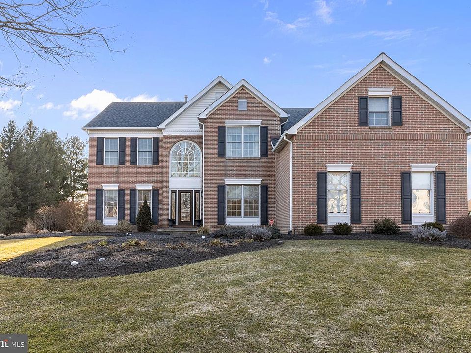 Nestled on a generous tree-lined lot in the welcoming community of Yardley Estates, this handsome brick home opens to reveal a light-filled two-story foyer with hardwood floors and turned staircase. To the left is a quiet and neutrally-decorated formal living room which opens between classic pillars to a bright formal dining room, which afford lovely views from the oversized bank of windows. Chair rail moulding and trim work tie the rooms together and give tasteful continuity. To the other side of the foyer, a studious home office is ideally situated for privacy within the home. Straight back into the home, pass a convenient powder room before entering into the stylishly updated kitchen, which balances the home's hardwood flooring with deep, rich cabinetry, granite counters. double in-wall ovens, island-set gas cooktop, , and pencil tile backsplash. The breakfast area of the eat-in kitchen makes use of light from a door to the deck as well as from the wall of windows with skylight above. On the other side of the kitchen half wall, a family room soars with spaciousness and is anchored by a floor-to-ceiling brick fireplace. Here, more neutral tones abound. On one side, find a second staircase to the upper level, and opposite it, French doors to a brilliant sunroom, which boasts three walls of windows, fabulous views, and access to the backyard via the deck. A laundry room/mudroom leading to the three-car garage completes this level. Upstairs, three spacious and tastefully decorated bedrooms share a full hall bath. A serene main bedroom suite features a window-side sitting area, dressing area, massive walk-in closet with window, and calming bathroom with corner soaking tub and stall shower. The basement level was made for entertaining and relaxing! Currently used as a game room, this area has room for a home bar, game room equipment, storage, and living space. In warm weather, the entertaining begs to be held outdoors on the lovely composite deck or in the large, level backyard. Close to both Yardley Borough and to local shopping and amenities as well as to Newtown Borough, major commuting routes, and parks. Acclaimed Pennsbury Schools.