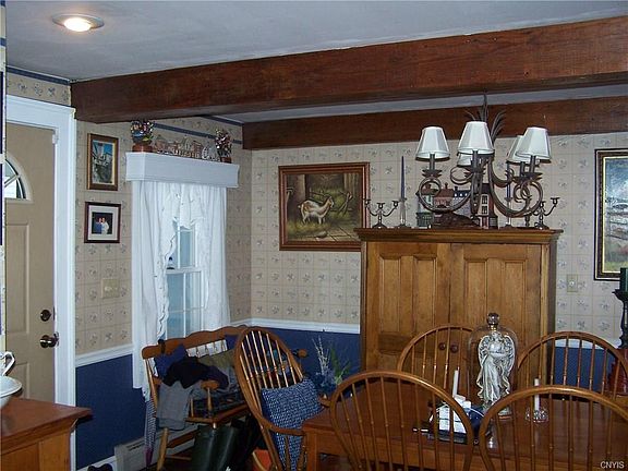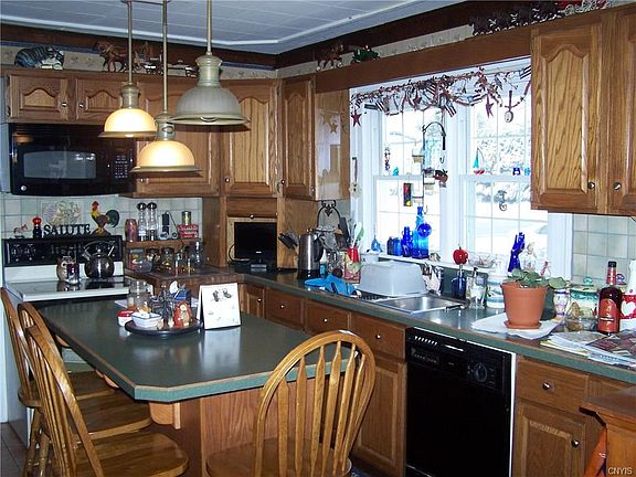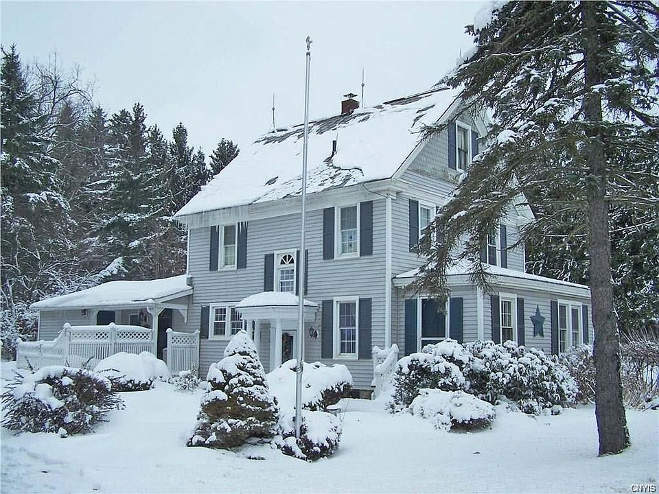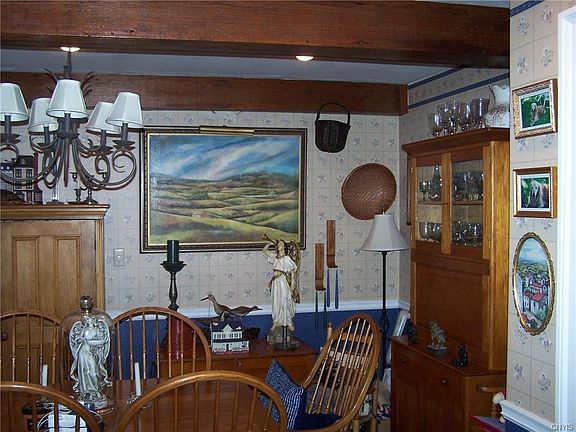 This beautiful country home just outside the city abounds with character and charm! Hardwood flooring, cozy family room with magnificent brick fireplace, beamed ceiling and sliding glass doors to the deck, eat-in kitchen with center island for all your cooking pleasures, formal dining room, living room, office, 1st floor laundry and half bath, an abundance of built-in shelving and storage, chair rails, crown molding, stained glass and more, situated on a double lot with a huge wrap around deck, several outbuildings, a dog run and a circle driveway and an extra-large garage, conveniently located for Ithaca and Dryden commuters. Take time out of your busy schedule to view this beautiful home.