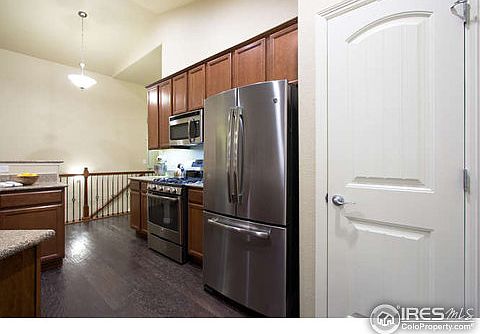 Very well maintained ranch style home w/ finished basement and 3 car garage in desirable north Loveland. Built in 2014, enjoy 100% main floor living - master bed/ba and laundry. Vaulted ceilings, gas fireplace and dark hardwood floors.Kitchen includes 42" cabinets w/ lighting, SS appliances and granite island. Levered door handles throughout, 5 pc master w/ walkin closet, 50gallon water heater and RO system. Fenced back yard backing to open space and views to west. Still has that new home smell!