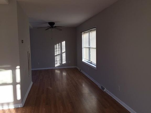 Great location, Townhouse style, half duplex, with private fenced in yard, private off street parking, newer construction home, good size living, large master bedroom w/two big closets, full unfinished basement w/washer/dryer hookup. includes refrigerator, dishwasher, and stove, freshly painted. Across street from new school, near Bass Pro Shop. close to train station, public transportation, stores, highways.