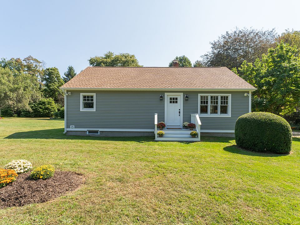 Welcome to this pristine 2-bedroom Cape on Pendleton Hill Road in North Stonington, CT! This is a rare and exciting opportunity to own a remarkable home on a sprawling 2.01 acres of picturesque land. Enjoy serenity in your backyard oasis featuring professionally landscaped grounds, manicured gardens, a 20x22 Deck & an above-ground pool - ideal for summer relaxation and outdoor entertaining. You'll be greeted by stunning vaulted ceilings with exposed beams and abundant natural light filling the living room, creating a bright and uplifting atmosphere. Gleaming hardwood floors flow effortlessly from the living room throughout the home. The stylish kitchen features white cabinetry, stainless steel appliances, and tranquil views of the lush backyard. The main level has a newly remodeled full bathroom, a spacious second bedroom, and a primary bedroom with custom-built closet shelving for added convenience and organization. The lower level provides ample storage space, laundry hookups, and access to utilities. This home features a 3-year-old roof, a 200 Amp Circuit Breaker, a 4-year-old water heater, central air & more. Schedule a private tour today & envision yourself calling this property "home"!