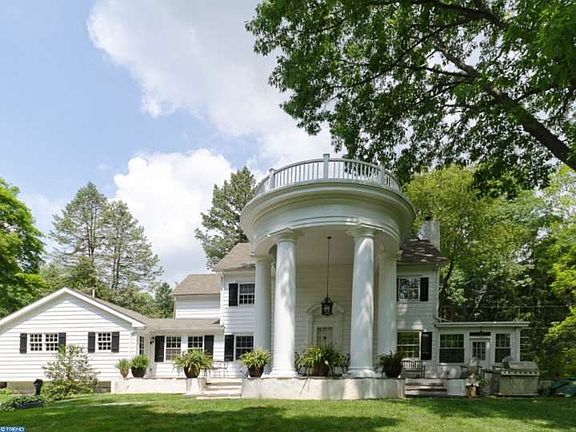 Welcome to one of Glenhardie's gems, the 'Forge House', a Greek Revival Colonial, circa 1900. A gated stone wall greets you as you enter the circular driveway to this elegant home on a park-like setting with mature shade trees stretching to a sparkling stream. A flagstone patio spans the front of this majestic home and welcomes you to the 2-story portico entrance crowned with a widow's walk. The owners recently expanded this sophisticated home with a 400 sq. ft. kitchen addition that will certainly delight the most discerning gourmet cook. This Chef's kitchen with vaulted ceiling is equipped with stainless DCS Fisher&Paykel double convection ovens, refrigerator, gas cooktop and 650CFM 36' hood, Sharp m/w drawer, Bosch d/w, and wine cooler. An 8x6 center island with breakfast bar and prep sink, soapstone countertops and large pantry complete the kitchen of your dreams. The kitchen flows into separate breakfast room, family room and mudroom. From the entrance foyer, the sitting/gathering room has arched doorways leading to the dining room and living room with gas fireplace. The enchanting sunroom (w/heat & ac) is the perfect place to relax with a wall of windows overlooking a peaceful view of lawn & stream with gas fireplace flanked by built-ins. The 2nd floor includes a master suite, hall bath, and 3 more bedrooms, one with a study and laundry. The 3rd floor has 2 bedrooms, one currently used as an office, and a full bath ? perfect for an au-pair suite or teen get-away. Charm abounds in this home with original millwork, antique glass, wainscoting, crown molding, window seats, designer window treatments, vintage chandeliers, and plantation shutters and has also been updated to meet today's standards with newer 3-zone heat and ac, updated kitchen & baths and partially finished w/o basement plus storage rooms and 2nd laundry. Conveniently located to all the best of the Main Line: major shopping and commuting, Valley Forge National Park (.3 mi), Train (3.3 mi 8 mins), Glenhardie Country Club, and top-ranked Tredyffrin-Easttown schools make this a perfect place to call home. Did I mention low, low taxes?!