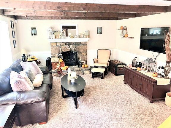 - Liv Dscrp: Flooring - Wall To Wall Carpet, Fireplace, Window(s) - Bay/Bow/Box, Ceiling - Beamed