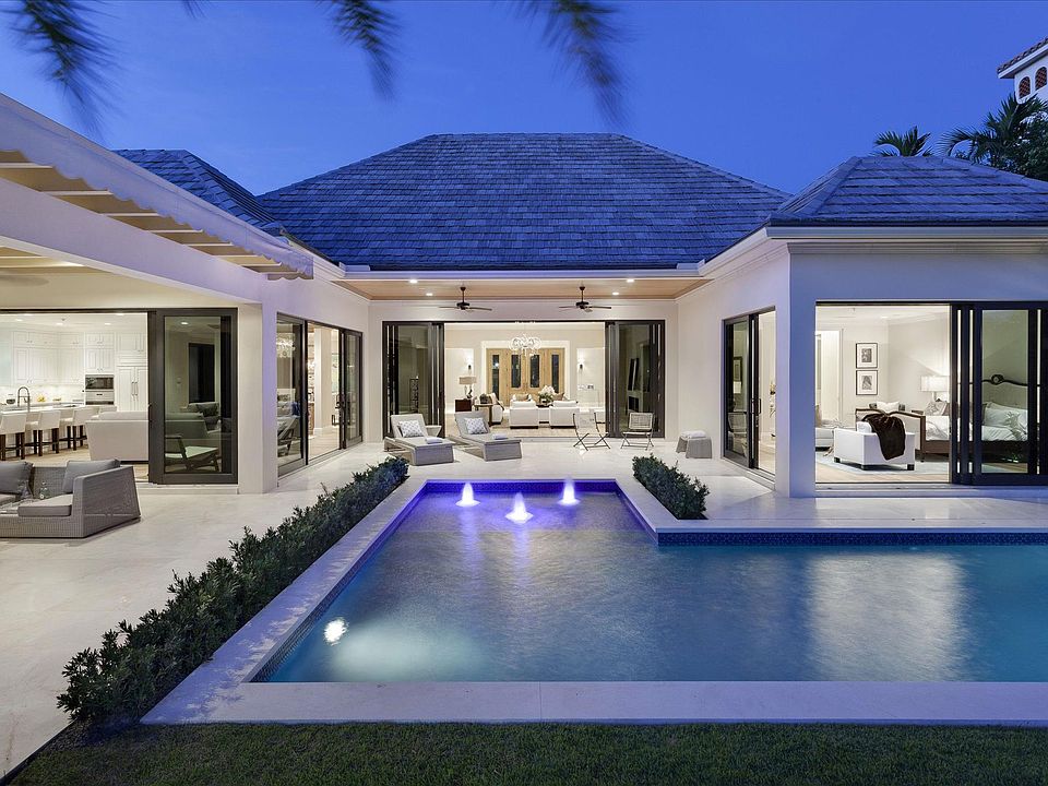 Created by master builder Addison Development, this brand-new Regency-inspired deepwater estate with yacht dockage is designed for gracious, relaxed living in The Sanctuary.A brand-new deepwater estate in The Sanctuary, Boca Ratons world-famed yachting enclave, this understatedly elegant residence is one of the latest creations by Dan Swanson of Addison Development, a Palm Beach-based master builder with a portfolio of exclusive high-end luxury estates. Sited on 94 feet of south-facing waterfront with views reaching The Sanctuarys nature preserve, this distinctive villa interprets the tradition of Regency architecture with a fresh clean flair, a comfortable scale, and a free-flowing single-level floor-plan for easy modern living.Inspired by the classic Parisian alle, rows of blueberry trees line the double-door entry to the seamless living spaces with finishes of French washed oak, honed French Vanilla marble, and matte Venetian plaster, all in a palette of soft muted tones. Walls of retractable glass doors line the open great room and morning room, joining these spaces to the outdoor lounge areas featuring a canvas-covered pergola by the artfully designed pool. Also opening to the pool terrace, the private master suite features an exquisite bath that combines with an open dressing room to create a voluminous salon-like retreat. An architecturally striking residence meeting luxury standards, the estate is complete with yacht dockage just off the Intracoastal Waterway.LocationTern Point Circle, Boca Raton, Florida. One of the nations most prestigious communities, The Sanctuary is a guard-gated yachting enclave featuring a 20-slip marina, Har-Tru tennis courts, and 27-acre bird/wildlife preserve all in the utmost seclusion with private land and water patrols. Close to the beach, this exclusive address is only minutes from the legendary Boca Raton Resort & Club, Mizner Parks world-class shopping and dining, and Boca Ratons private executive airport.PropertyThis brand-new Regency-inspired villa stands on 94 feet of deepwater shoreline with yacht dockage and views to the lush nature preserve. A slate paver motor court leads to the three-bay garage and beautifully landscaped entrance. Retractable glass doors open the entire south side of the residence to the waterfront garden terrace with a canvas-covered pergola for relaxing by the L-shaped heated pool with sun shelf, water features, and night lighting.ResidenceFine finishes and comfortable proportions are hallmarks of this single-level residence totaling 6,549 square feet including three bedrooms, three and a-half baths, home automation systems, impact-glass windows, and a generator. Wide-plank French washed oak floors carry through all main rooms, each giving a tranquil view of the waterway or lush gardens.Set off by stone cladding, sidelights, and glass panels, the double-door entry leads into the foyer with honed French Vanilla marble floor. Directly ahead, the window-walled open great room flows to the waterfront pool terrace and is appointed with wide-plank French washed oak floors and a sleek marble fireplace. Off the great room is the open-plan study. Also open to the great room, the dining room is fitted with an elegant built-in buffet and overlooks a lush garden. The open progression continues into the gourmet kitchen and morning room, wrapped with retractable glass doors that completely open the space to the poolside pergola and loggia. Fitted with a built-in media center, the morning room is separated by an island/bar from the kitchen which has custom cabinetry, Madre Patrola quartzite counters, and French Vanilla marble tile backsplashes. High-end appliances include the 48-inch Wolf dual-fuel range, Wolf wall oven and microwave, 48-inch Sub-Zero refrigerator/freezer and wine cooler, Bosch dishwasher, and KitchenAid ice-maker. Through a double-door entry off the great room, the private master suite overlooks the waterfront pool through retractable glass doors that wrap