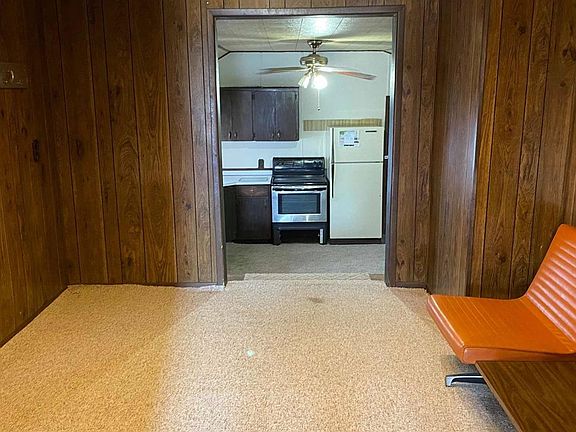 2 Bedroom, 1 bath, basement 1 attached single car garage, and a 32 x 24' detached double car garage. Stove and refrigerator stay. Home needs work. Nice large corner lot in good neighborhood.