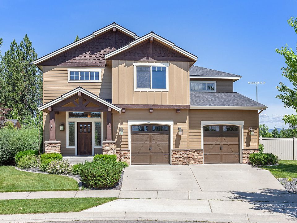 Location...Location...Location... 4222 sq. ft. Coeur d'Alene Place two-story plus a finished basement home! This home sits on .27 acre lot with no rear neighbors. The 3 car garage features 2 bays with one being a tandem. The home offers 5 bedrooms-3.5 baths loaded with many wonderful amenities. The Open main-floor great room has a gas fireplace that is see-thru into the backyard's covered deck. The kitchen is quite spacious with a large island, stovetop, double ovens, built-in microwave, walk-in pantry, granite countertops, and stainless steel appliances. The upstairs laundry room is conveniently located near the bedrooms, generous master-suite includes a dual vanity, separate sunken tub, and large walk-in closet.