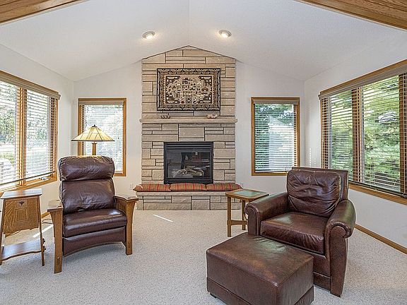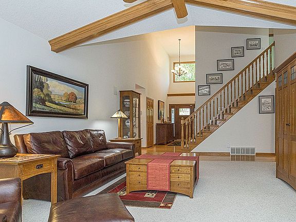 Energy efficient, 2 x 6 inch lumber construction with many south & south east facing windows. This bright, open, 1.5 story classic home is located in a family friendly gated neighborhood, on a quiet street at the top of a private cul-de-sac, close to Pleasant View School. There is a dedicated sidewalk to the school. Enter the home through a beautiful hardwood front door which is complimented by matching garage doors. The main level has carpet, hardwood and tile floors, a formal dining room, and features a large living room with beamed vaulted ceiling, gas fireplace, and surround sound. The main floor also has a half bath and laundry. The kitchen features Solid Oak Mouser Cabinets, tile floors, granite counters, tiled backsplash and stainless steel appliances. Appliances stay with the home. The master bedroom with garden view is located on the main level and features hardwood floors, tray ceiling and a walk-in closet. The attached, updated master bath has Kohler fixtures, imported tile, granite counter tops, large walk-in shower, jetted tub and heated floors. The Upper level includes 3 bedrooms and a renovated full bath with tile floor, walk-in tile shower, granite counter tops and Kohler fixtures. The partially finished lower level features a fireplace, surround sound and a full bath, workshop and storage area. Outside you'll find a composite deck built by Lovewell Fence & Deck in 2019 , porch and patio overlooking the yard with mature trees. Exterior features include a lawn irrigation system, professionally landscaped garden, pergola and water feature that includes a pond & waterfall. There is a large Weber gas grill (included) & fire pit, both are supplied by in line natural gas ---so you never have to refill a propane tank again!! The yard also includes plenty of open space for recreation. Close by is Pleasant View School which offers additional playgrounds & ball fields. ADT security system is included. The home is outfitted with a 8 kw Generac backup generator powered by Midamerican Natural Gas---This covers the furnace, lights, refrigerator, stove & provides essential energy during power outages.