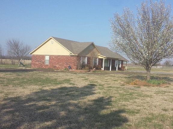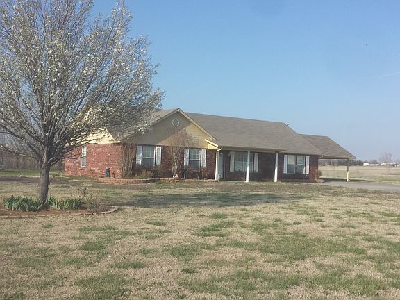 This home is in the country yet near town on paved roads on the west side of Muskogee. It has updated kitchen, floors, walls and etc. It has four bedrooms and three full baths, two living areas and two outside storage buildings. The roof is only two years old. What isn't brick was painted two years ago. You'll have room to grow a garden, camp out, and build a fire in your back yard. Great neighbors! It's living in the quite country yet being still very close to city! You'll love it!