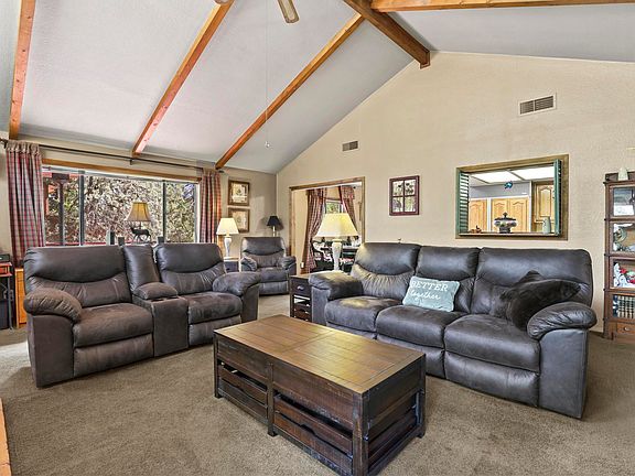Welcome to your dream mountain retreat! This stunning 2-bedroom, 2-bathroom cabin nestled on a spacious half-acre lot offers the perfect blend of rustic charm and modern amenities. With 1,752 square feet of living space, this cozy cabin provides the ideal getaway for those seeking tranquility and comfort. The inviting wrap-around deck is the ideal spot for sipping your morning coffee or hosting evening gatherings with friends and family. Imagine the joy of firing up your very own outdoor pizza oven, crafting delicious homemade pizzas as you take in the views of the surrounding natural beauty and wildlife. Relax and unwind in the private hot tub located under the deck just right outside of the owner's suite door or cozy up inside next to one of the two wood burning stoves. Continued... With a covered single car garage and two detached storage areas, you have plenty of space for your tools and equipment. Garden enthusiasts will appreciate the fenced garden area, ready for you to cultivate your favorite vegetables and flowers. One of the standout features of this cabin is its brand-new roof, providing peace of mind and protecting your investment for years to come. This property has been meticulously maintained, and it's ready for you to move in and start making memories.