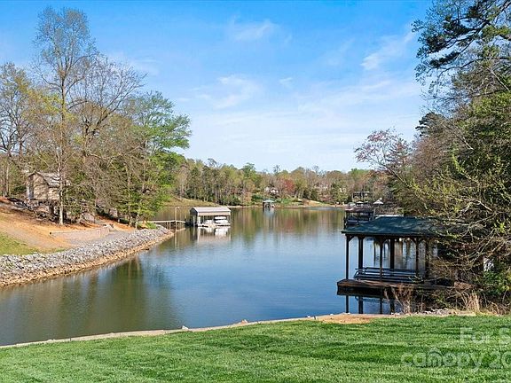 Solidly built and meticulously maintained, this 7,000 SF waterfront home on Lake Hickory offers three bedrooms and a lower level in-law suite with private garage entrance and full kitchen! The main level features a soaring 14' tall foyer opening onto a formal dining room, with a columned entrance to the great room overlooking the lake. The spacious kitchen offers a center island, plenty of cabinet storage, a bayed breakfast area, and hallway to the laundry, half bath, and triple garage. The main level also features relaxing primary suite with private bath and walk-in closet, plus a 2nd bedroom suite with private bath and a study. The upper level features a huge bonus room, craft room, & office. The full lower level can double as an in-law suite, featuring a den, bedroom, two full baths, full kitchen, gym, billiards area, sunroom, storage/workshop, and garage area. Outside, enjoy the 1.73 acre double lot with in-ground pool, fire pit, covered dock, and long-range views of Lake Hickory.