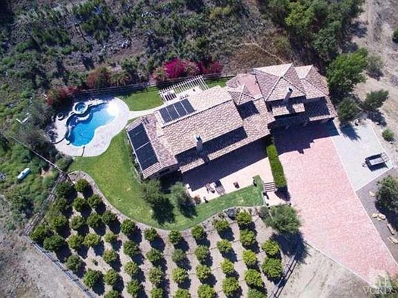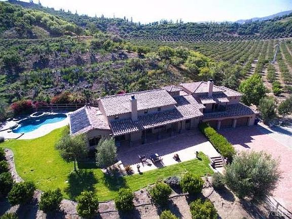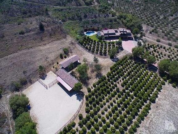 6+Acre Ranch,Custom Tuscan Estate.Featuring profitable tangerine & avocado orchards,custom horse facilities,5 Stall Barn with run and large turnout,wash rack and cross ties, separate hay & tack building with roll up hay door,ample trailer parking dressage Arena 66'x 198', with gorgeous mountain & valley views. Built in 2007 with an emphasis on Old World charm. Home boast approximately 3,000 sq ft.clay tile roof, stunning Hickory wood floors; 3 Bed, 2.5 Bath, Great Room with tremendous Fireplace and soaring wood-beamed ceiling and an intimate library/office retreat. Gourmet chef's kitchen with Alder wood cabinetry and top of the line stainless Viking appliances. Large master retreat with fireplace and double-door balcony over looks the most serene views. Opulent master bath with soaking tub and over sized shower.Outdoor oasis possesses a swank salt water pool and spa with gorgeous waterfalls. Truly special one of a kind property and setting for the entertainer or avid equestrian
