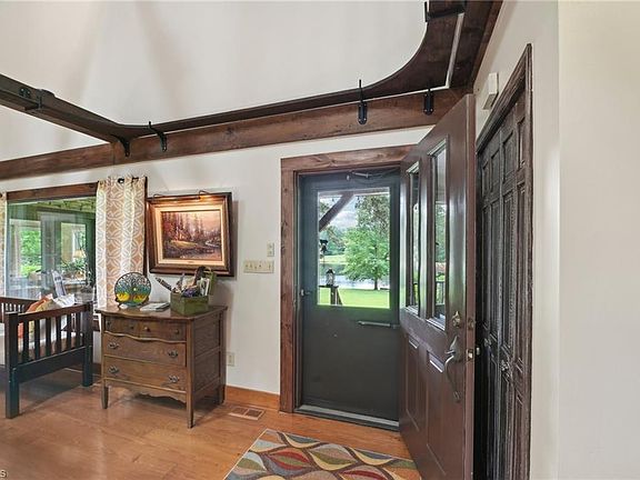 Stunning 47-acre Retreat with a Custom 3356 sqft Home plus a Pond & Outbuildings. This unique property features an original cabin with vaulted ceilings, timber beams and incredible brick fireplace. In 2010 the kitchen was totally updated and a timber-frame addition was added offering a spacious primary suite, sunroom, laundry room, additional full bath and attached garage. Permanent stairs lead to 1000+/- sqft floored/wired/sheet rocked space, easy to finish. A loft with walk-in closet overlooks the great room and could function as a fourth bedroom. With a five bedroom septic system, you have plenty of options. The land is ideal for recreational use with breathtaking views of the stocked 5-acre pond from the porch or dock and a screened picnic shelter and fire pit area. It can also function as a farm with fenced acreage, a chicken house, large powered outbuilding and greenhouse. Peaceful, private, and packed with possibilities—this property is a must-see!