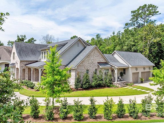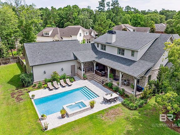 This beautiful GOLD FORTIFIED home is in the neighborhood of Stillwood at Point Clear and just minutes to downtown Fairhope. This magnificent home was built by Craig Miller, one of the most sought-after builders in South Alabama, and offers a classic Tudor exterior with a blend of contemporary interior where no detail has been spared. Upon entering, you observe the open floor plan containing all high-end finishes. And the attention to detail and quality construction is evident everywhere. The living/dining room with fireplace and a marble mantel opens into the marble gourmet kitchen featuring all Thermador appliances. Rinnai water system throughout, wet bar with wine rack, Turkish marble countertops with a large island for eating and a cozy seating area in the kitchen. All will enjoy the fabulous entertainment area on the back porch with a fireplace and outdoor kitchen overlooking the beautiful heated inground pool (with jacuzzi). Professional landscaping adds to the ambiance of this private retreat. A luxurious primary suite is on the main floor offering a custom walk-in closet, double vanity with marble countertops, soaking tub, large walk-in shower with spa effects one would only expect for such an exquisite home. A second bedroom is also located on the first floor. upstairs you will find a sitting room and 4 bedrooms with two Jack and Jill bathrooms. Each bathroom has its own vanity and toilet with shared shower/tub. So much more this beautiful home has to offer. A must see!! Buyer to verify all information during due diligence.