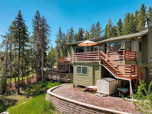 Welcome to Evergreen! This meticulously maintained gem, full of improvements and upgrades, is the perfect place to call home. Upon arrival to this 1-acre mountain property, you are greeted by lush greenery, beautiful aspen trees, tall pines, paved driveway, and a fully fenced yard. Glide up the exterior stairs to one of three deck spaces for the front entry. The main level has a wonderful open floor plan with beautiful hardwood floors throughout. The living room with stone, wood-burning fireplace is light and bright. The dining room opens to the spacious kitchen with granite countertops, new stainless-steel appliances and sink, wine fridge, abundant counter space, and ample cabinet storage. Through the main level hall, approach a guest bedroom, followed by a large, airy primary bedroom with considerable walk-in closet. Slide out to the private primary balcony to enjoy a cup of coffee and catch a glimpse of your new wildlife neighbors! The main level is rounded out by a sizable full bathroom with twin vanities. Head down to the lower level to be greeted by a second large living space with wood-burning stove and brand-new carpet. The lower level also hosts a third bedroom, full bathroom, quaint laundry space, and walkout access to the gorgeous lower-level deck. Don’t forget about the 2-car attached garage with workshop and bonus storage space not even counted in the square footage! Come take a look at this darling home before it’s too late.