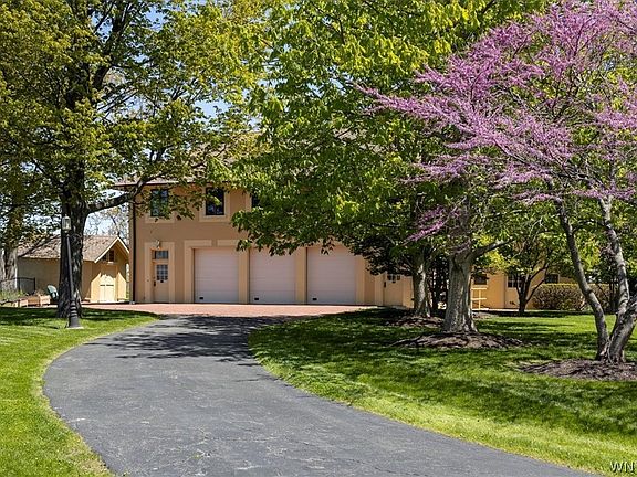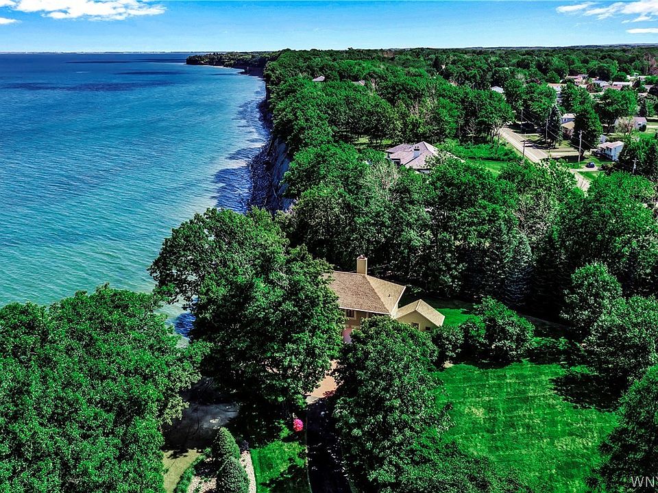 Remarkable & Rare opportunity to purchase this historic carriage house located on Lake Erie. Tucked between a fieldstone fence & situated high on the cliff overlooking Lake Erie, this home sits on 1.4 acres of mature, beautifully landscaped property and features 272 FT of Lake Frontage. Recently subdivided from the main house it accompanied, this carriage house features 2 bdrms, 1.5 bath, open living room/dining room above a 3.5 car garage with a full basement & 2 additional garden rooms/sheds. The entire interior has been freshly painted and has new luxury vinyl flooring, Central Air, Pella Windows. Views of Lake Erie & Downtown Buffalo are Priceless! The opportunities are endless for this property.....enjoy it for full-time lakefront living, a quiet summer getaway, Air BNB, or take advantage of the land itself and rebuild your dream home. Attractively priced for over an acre of Lake Front Property. Don't miss this one...Waterfront property is hard to come by! By Appointment Only. Offers due Friday 6/18 at 9AM.