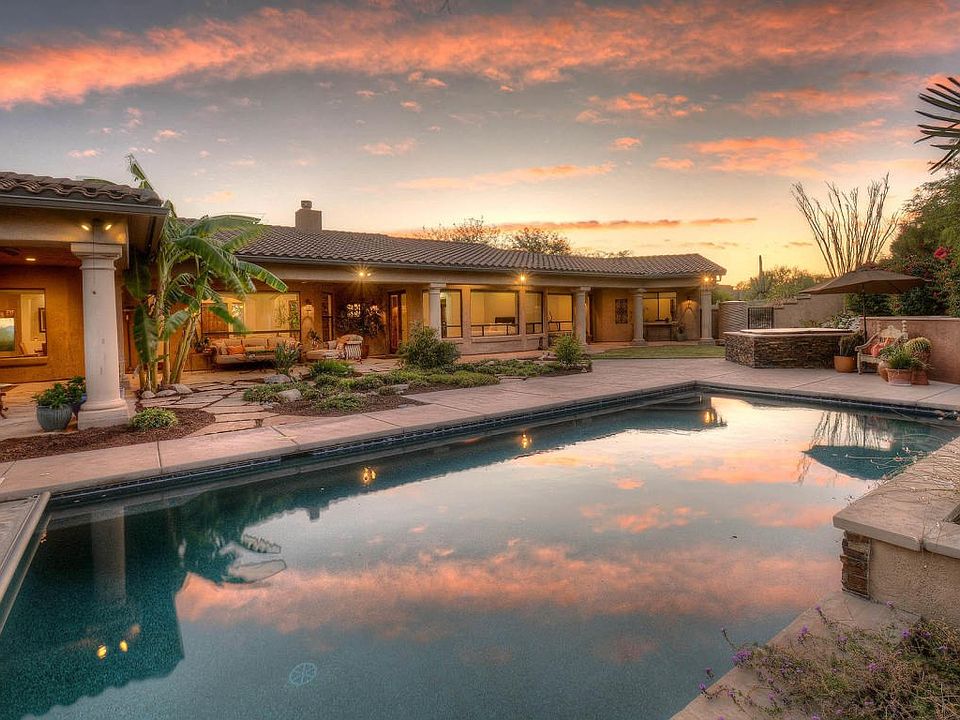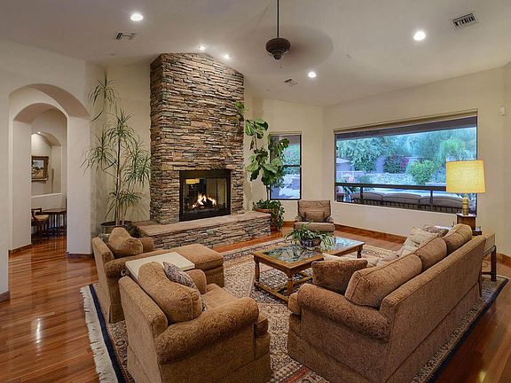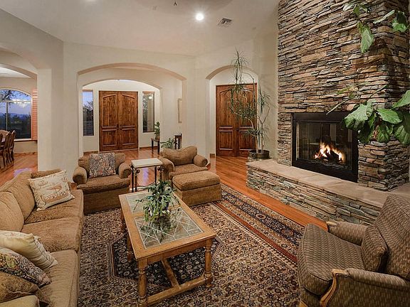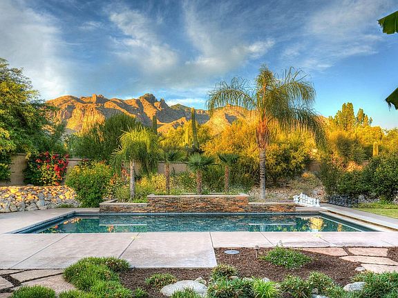 Magnificent custom home built in 2007 looks brand new features gleaming Brazilian mesquite floors, fantastic split plan, game rm, attached guest house, loaded chef's kitchen w/Wolf range &Subzero fridge , formal & informal dining, home office, studio/den, luxurious master suite, all en suite baths, glorious mountain and city VIEWS, stunning landscape incl grove of fruit trees (apricot, bananna, pear, grapefruit & more). Custom crafted with beautiful finishes & perfect for family living. LOCATION is amazing; La Encantada is .5 mile away & Banner/UMC is a straight shot down Campbell. Small gated community RARELY has home for sale - enjoy views from practically every room - or relax on the deep shady porch after a dip in the lovely pool Best in the foothills in this price point - WOW!