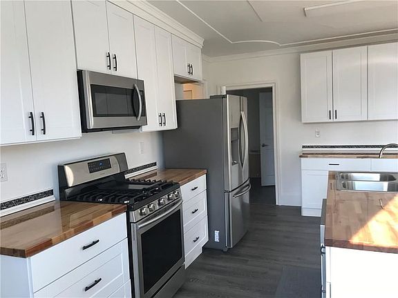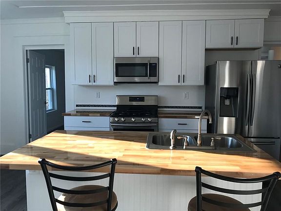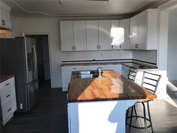Beautifully updated home has an open floor plan. The kitchen has gleaming butcher block counters and stainless steel appliances. The living room has a cozy gas fireplace. There are 3 bedrooms & 2 full bathrooms, 1st floor laundry with new washer and dryer. All new windows, vinyl siding & metal roof.
