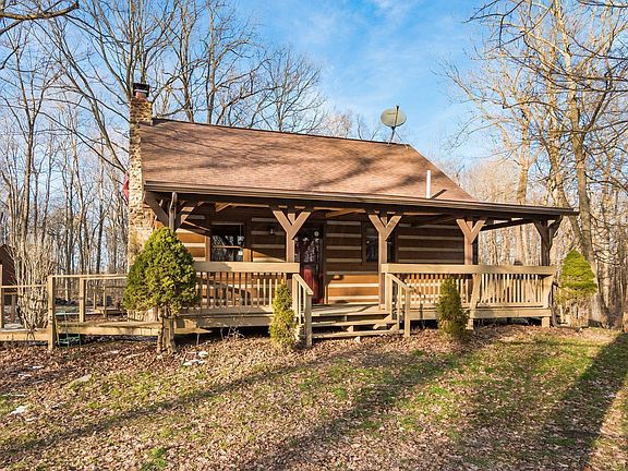 LOG CABIN on 7.5 acres in Champaign County! Your perfect oasis to get away and relax; enjoy the wildlife (deer, turkeys, birds); relax by the firepit, or hunt! This one of a kind cabin has a sleeping area upstairs with the option to turn the dining room or a room in the basement into another bedroom! Two full baths - one with a new shower and new flooring! Lots of counter space in the kitchen! Garage could easily hold 4 cars in addition to a HUGE work area - plus a carport. Camper also conveys! New roof on the garage and front of the house. New well and new water softener.