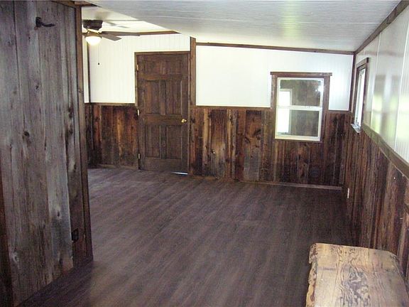 3 Bedroom 1 bath ranch style home with attached garage on a wonderful 5.6 acre lot. The attached garage is a long one stall with overhead doors on both ends. This home is move-in ready with all new flooring. The kitchen has a large pantry and the front porch is enclosed. For additional storage there is a detached 2 stall garage and 2 small sheds. The large lot has plenty of room for all your family activities with swing set and a large screened pavilion that has power and a concrete floor, just add your own fire pit and let the fun begin. The horse trails are nearby so if you are a horse enthusiast the 2 stall garage with attached lean-to could easily be converted to a stable for your horses, 2 sheds for storage and there is plenty of room for pasture.