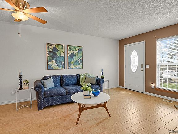 This updated END unit is a fantastic find, offering privacy with only one shared wall! It features a cozy, private enclosed patio with direct access to the open space grounds, perfect for outdoor enjoyment. The primary bedroom is bathed in natural light thanks to the skylights in the vaulted ceiling, creating a bright and airy retreat. The new smooth-opening closet doors add a nice modern touch too! The bathroom has been beautifully updated with a new sink and flooring. The spacious living room is highlighted by a charming fireplace, adding warmth and character to the space. This home has been maintained with several updates throughout, including new flooring on the main level, newer appliances, central AC, granite countertops, and upgraded to an electric water heater. Recently painted and new carpet upstairs! Brand new closet doors in the primary! The HOA has recently replaced the roof and skylights, offering peace of mind for the future. Gorgeous view of the foothills from this unit! The pool is located down the small hill across from this unit adding a nice touch for enjoying those sunny days or unwinding. Conveniently located near the mountains, walking trail, golf courses and C-470. This home is the perfect combination of comfort, style and location! A twelve-month Home Buyer Warranty Policy also comes included! Buyers bring your mortgage interest rate down with Lender Paid 2/1 Buy Down with our affiliate Lender.