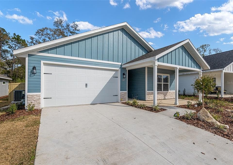 Welcome to the delightful world of the Hayleigh plan on lot 187, brought to you by Michael Weseman of Weseman Homes & Renovations. Get ready to embark on a delightful journey within the vibrant and sought-after community of Grand Oaks Subdivision. This home is a true gem, tickling your fancy with its fun & cheerful personality. With 4BR/2BA spread across 1766SF, it exudes just the right amount of space for your comfort and enjoyment. Step inside and be greeted by a modern & playful craftsman style design that will instantly put a smile on your face. The open layout creates a sense of togetherness, allowing you to seamlessly move from one room to another. Think competitive game nights in the living/dining room and laughter that echoes through the halls. Our finishes include commercial grade luxury vinyl floors that can endure the pitter patter of tiny feet, the tip tapping of your favorite furry animals toenails or you dancing with your honey to the beat that keeps you young and spry. No carpets here! The gas kitchen, complete with a sleek hood vent, will surely ignite your culinary creativity. Here, you can prepare delicious meals on the large central island adorned with Pompeii quartz atop shaker style soft-close wood cabinets and decorative tile backsplash.The bathrooms are equally impressive, featuring luxurious Silestone quartz countertops, tile from the floors to the ceiling, decorative tile niches, and a spacious walk-in shower with not just one, but two shower heads in the main bath-providing a heavenly retreat to start or end of day. The home is not only beautiful, but built to last. Its Hardboard brand concrete siding with protective joint covers ensures durability in the hot, humid Florida weather while retaining its stylish appeal. Topping it off are architectural shingles and stunning 8’ stamped carriage house style garage doors, complete with hinges & handles to add a charming touch. Outdoor spaces are also well-designed, with covered porches ideal for enjoying your morning coffee or evening conversations.The low maintenance soffits and professionally designed front lawn landscaping, featuring easy care zoysia grass, enhance the home’s overall curb appeal. And let’s not forget the smart features that make this home cutting edge. With a smart panel and one downloadable app that controls the thermostat, garage door, keyless entry lock, and doorbell with video camera, you can easily stay connected and enhance the security of your new residence. The panel and app allow for you to add on and structure how smart you want your home to be. Location-wise, Grand Oaks is nestled near UF, 2 top ranked hospitals, Celebration Pointe and Butler Plaza. But what really sets it apart is its proximity to nature hotspots. Gainesville, a nature lover’s paradise, offers easy access to the Archer Braid Trail, Sweetwater Wetlands, Paynes Prairie Preserve and even Cedar key. So whether you are a hiker, cyclist, bird-watcher, boater, or simply like the great outdoors, tis home’s location is perfect for you. If you are wondering how to finance this home, Grand Oaks is eligible for 100% financing with no PMI, along with conventional, FHA, and VA. Or you can purchase cash! This home is perfect for your new abode or can make an incredible rental investment. Just ask us how!