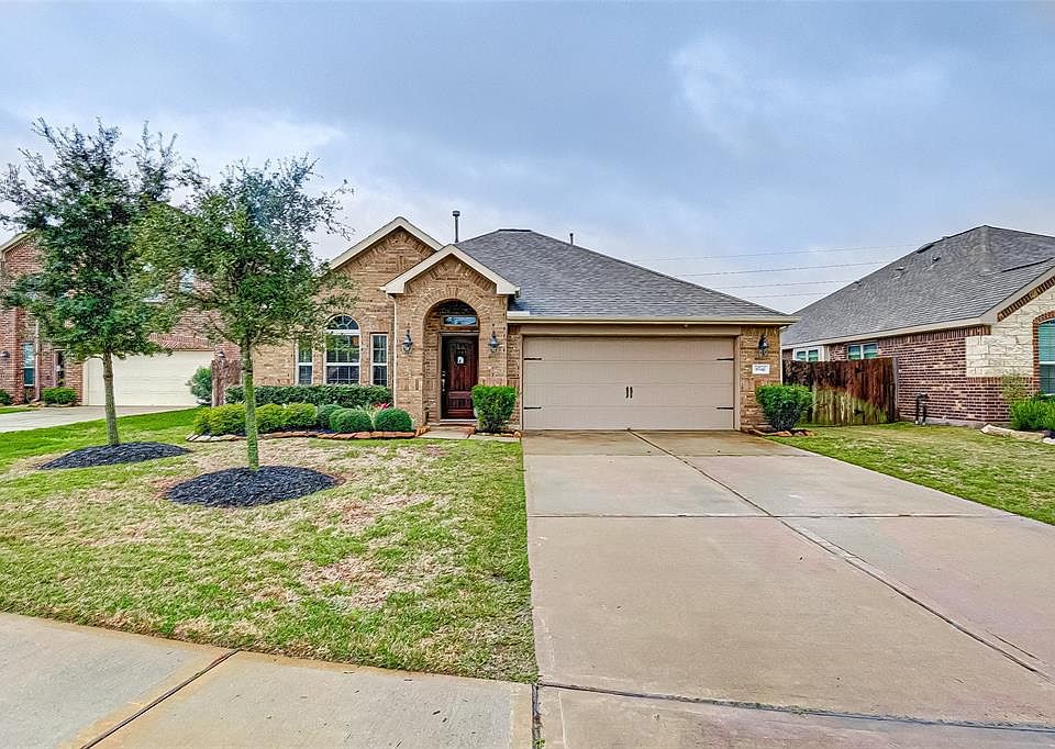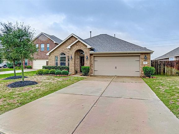 Gorgeous one-story Lennar "Cantera" plan has no neighbors behind and quick access to HWY 59, shopping & restaurants. Features in this open & flowing floor plan are 2" blinds throughout, high ceilings, crown moulding, and tile flooring throughout the living areas. Foyer with space for accent furniture & opens to Dining room. Dining opens to Kitchen with large breakfast/serving Bar, granite counters, tile back splash, wood-stained cabinets, S/S appliances including a gas range and side-by-side refrigerator stays. Living room is warm and spacious providing backyard views, Private master suite includes recent laminate flooring, beautiful master bath with granite counters, dual sinks, large walk-in shower & spacious walk-in closet. Secondary bedrooms have convenient access to second full bath. Oversized backyard includes a 15X6 covered patio and no back neighbors!! Convenient access to Shopping, Restaurants and 59 is just down the road! Come and schedule your private viewing today!