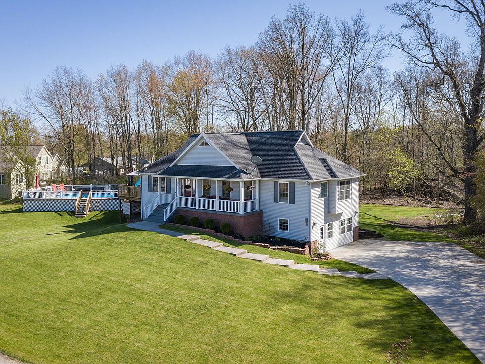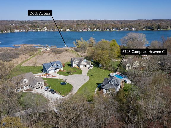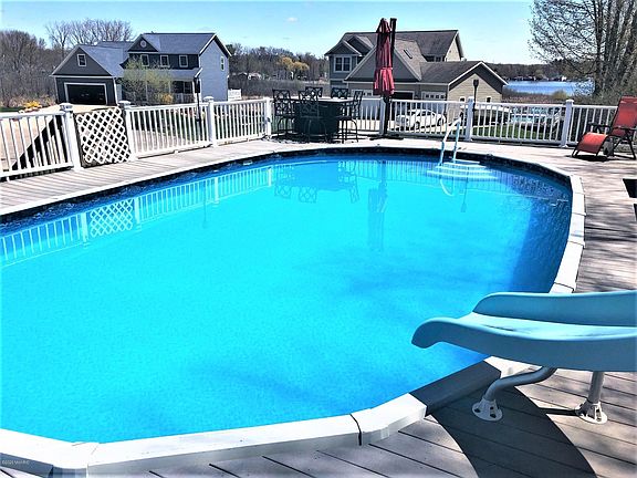 SHOWINGS TO BEGIN May 7! Truly a piece of Campau Heaven is what you'll see in this Caledonia home with deeded access and gorgeous views of Campau Lake. The spacious home at the end of a long driveway on a cul-de-sac has been newly freshened for the lucky Buyers. There are five bedrooms and three full baths! Open floor plan, large master with dual sinks and whirlpool bath and shower, kitchen with granite counters, center island and stainless appliances. Living room, dining, two bedrooms and another bath complete the main floor. On the walk-out lower level you'll find a huge recreation room with horseshoe bar, theater area and room for relaxing and games, plus two more bedrooms, a full bath, laundry room and tons of storage. The 3/4 acre lot has deeded access to all-sports Campau Lake and your shared dock to tie up your toys. The street side is ready for your seasonal decorating. and the lake side has a wrap-around deck that also surrounds the 18' x 36' pool and overlooks the lake.
