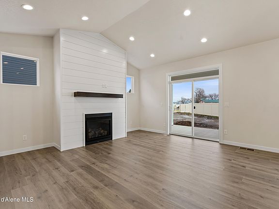 Corner Homesite I 3-Car Garage I 2 Level I Iconic Series-Brand New Home- The Bridger sits on a spacious corner homesite, offering rare privacy and space. Coeur d'Alene's newest Community is next to centennial trail for added charm, visual interest, and outdoor adventure. Quick drive to waterfront, downtown CDA. This home features vaulted ceilings, a shiplap gas fireplace, and a refined black & white palette with warm neutrals. The kitchen includes Sequoia quartz counters, gloss full-height backsplash, Moen hardware, premium stainless appliances, gas stove, oversized island, and walk-in pantry. The primary suite offers a full-tile walk-in shower with ½-inch frameless glass, elevated counters, and large closet. Covered back patio extends living space outdoors. Quality finishes, abundant storage, and full 3-car garage complete this thoughtfully designed home.
