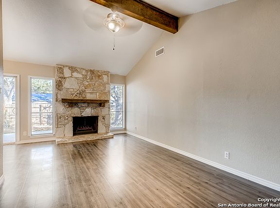 Welcome home! Lovely single story 3 bedrooms, 2 full baths located within the Babcock North Community. Close to the Medical Center area, UTSA, La Cantera, and USAA. Freshly painted interior with alluring flooring, along with spacious high ceilings. Get cozy with the gas/wood burning fireplace, which complements the living space. Book your viewing soon before this one disappears.