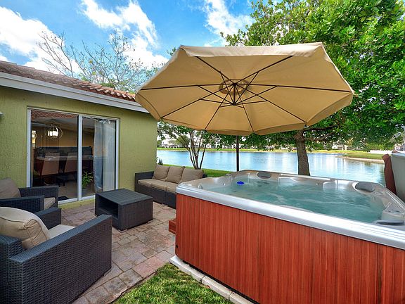 You'll fall in love with this spectacular lakefront home in Liberty Bay. Stunning water views from living, dining and bedrooms. Features include; 3 bedrooms, 2.5 bathrooms, 1 car garage, new wood laminate floors upstairs in bedrooms, newly carpeted staircase, neutral ceramic tile, all new stainless kitchen appliances, hurricane shutters, and above ground spa. Enjoy the bright and open living space with sliding doors leading to the paver patio. Relax in your own backyard paradise, complete with mature, flowering trees and lake view. Community amenities include; Clubhouse, Gym, Pool with beach style entry, Splash Park, Playground and 3 Tennis courts. Close to nature preserve, shopping, dining, turnpike and more.