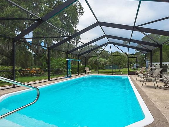 Private POOL home on 1 acre awaits you! Mature Florida landscape from years gone by accent this natural park like setting. Detached, screened in-ground fiberglass swimming pool is spacious and a great place to entertain, play, splash and have Fun in the Sun! Striking kitchen features wood cabinets, drop in range, breakfast bar, wall oven and newer appliances that are sure to impress! Eat in dining area, spacious bedrooms and bonus room for crafts, sewing or office overlook the sparkling pool! Enclosed Sun Room welcomes you to relax, sit and stay awhile. Located just off a county maintained road with No CDD or HOA fees... yet close proximity to major highways for shopping, restaurants and entertainment. CALL today for your private showing!