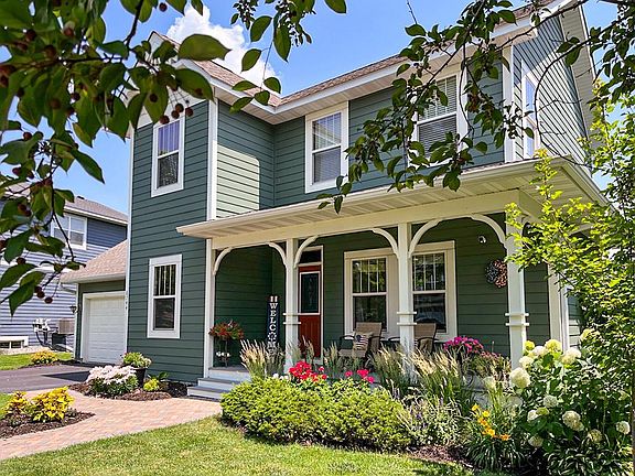 Welcome to Towne Lakes, a unique community that makes you feel at home! Every home design is different, not the cookie-cutter look that we have become all too familiar with. This home offers a Farm-style design with a classic front porch, and see the care that went into designing every detail of this home. You’ll appreciate the beautiful craftsmanship and amount of natural light that fills the home. This two-story has many updates throughout; the main floor features an open layout with a gas fireplace in the LR. The kitchen features a subway tile backsplash, hammered copper sink, granite countertops and beautiful SS appliances. The vinyl plank flooring and carpeting is new throughout! Entertaining is a breeze with the deck off the dining room, and the spacious 330 Sq Ft stamped concrete patio with firepit! Included in the quarterly association fee is sanitation, use of the outdoor pool and community room. There are walking paths and easy access to tennis/basketball courts, and parks.