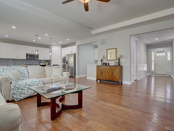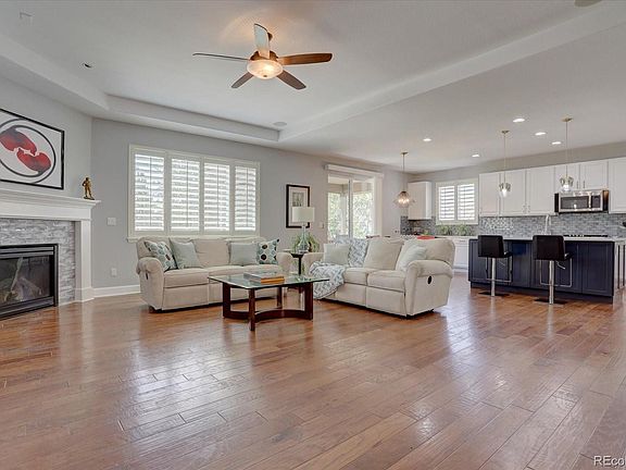 Stunning ranch style home that looks like a model home! Designer finishes, plantation shutters, hardwood floors, 8 ft. tall doors on main level. The gourmet Kitchen has a new center island and new upgraded quartz counters, upgraded stainless appliances, gas cooktop, double ovens, upgraded cabinetry, tile backsplash,custom walk-in pantry. The Tech center office next to kitchen has upgraded quartz counters, cabinets, Cat5 wiring. The Great room has a tray ceiling, tile fireplace, and plantation shutters. The primary suite features a tray ceiling, bay window, plantation shutters, garden view, updated 5 piece bathroom with new tile, frameless shower, custom closet. The Main floor office has built-in bookshelves, French doors, hardwoods, updated full bathroom, bedroom with Cat5, bedroom with glass door (the plain door is in the basement) and shiplap. The Finished basement features a nice guest suite, 3/4 bath, family room, home theater, surround sound, exercise/game room area, and lots of storage. Updated lighting throughout, spectacular outdoor living space for year-round entertainment & relaxation, covered porch, solar sun shades, gas line for grill, large Patio, Flagstone terrace with fire pit area, Four Season landscaping on quarter-acre lot, Front/back landscape lighting, Mountain views! Enjoy your backyard retreat! Minutes to E-470, DIA, Southlands Shopping Center, Golf Courses, Tallyn's Reach Clubhouse is minutes away at 24900 E Park Crescent Dr.
