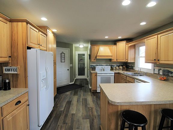 Beautiful 3 Bed, 1.5 Bath, 2 car garage, 20x40 heated garage pole barn. Spacious kitchen with hickory cabinet, pantry. Dinning room has patio doors that lead out to a large deck to enjoy the evening sunset. Walkout basement, finished, is knotty pine with a pellet stove. Updates include windows 2003, siding 2004, roof 2005, bathroom 2018, high grade laminate flooring, carpet in bedrooms 2020. Sale is contingent on seller finding suitable housing.