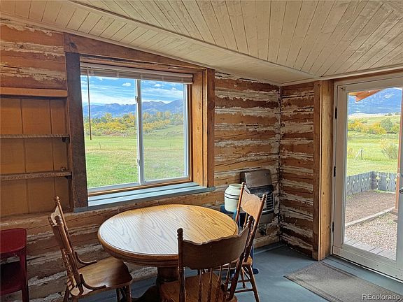This charming one-of-a-kind nostalgic home can be found in the exclusive Hillside area. A backdrop of stunning views of the Sangre de Cristo Mountains, with mountain pastures surrounding the home on two sides provide the setting for this charming home where you can almost touch the Sangre de Cristo Mountains. Enter the 3 to 4 BR, 2 BA, 1,439 SF home through a charming sunporch boasting new windows. The home has terraces all around giving private entrances to two of the bedrooms. The living room has cathedral ceilings and pecan floors. Efficient gas heaters and wood stove provide most of the heat for the home. Up dated Eat-in kitchen, new carpet in the primary bedroom and new flooring in both baths. From the windows in the living room and kitchen you can see, the picturest Wet Mountain Valley and stunning Sangre de Cristo Mountains. There is an old barn, storage building with attached shops and corrals. Easy access to the National Forest is close by giving entry to many of the trails that traverse the mountains. The home sits on 1+ acres. Would make a wonderful year-round home or possibly an Airbnb.