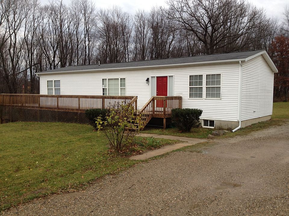 Home Ownership is right at your fingertips with this great home! This 2002 built home offers two bedrooms and two baths on the main floor, with the potential for a third bedroom and third bath in the walkout basement! You will fall in love the completely updated modern finishes in the bathrooms and Kitchen; and Top of the line stainless steel appliances; This Home is Move in Ready and waiting for You!! You will Enjoy grilling out and entertaining on your wrap-around deck, as well as plenty of space for hobbies and more on this 1 acre piece of countryside surrounded by peaceful wooded acreage. Windows are energy efficient and a year old, Central Air and Furnace only 5 years old! Do not miss your opportunity to own this home! Set up your private tour today!
