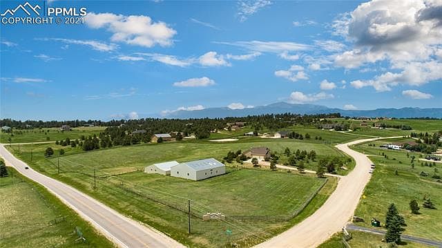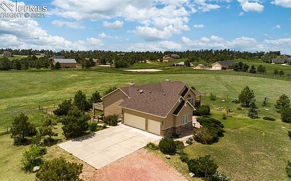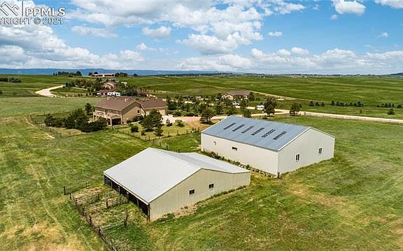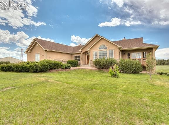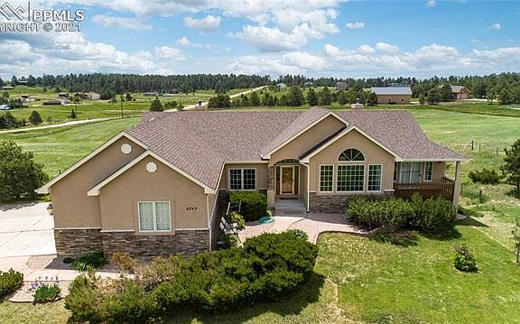 ~Black Forest living at it's very finest! This one owner, custom rancher offers all the upscale interior amenities along with exterior country living! Enjoy the outstanding views, including Longs Peak ~This home has been upgraded and updated throughout, including central A/C ~The main level will bring you open concept living with a gourmet kitchen w all Jenn-Air Bronze appliances, including a warming drawer, granite counter tops, walk-out to enormous deck with view ~ Formal dining ~Living room w stacked stone fireplace w blower ~The Gorgeous Master Suite has spa shower, perfectly placed jetted tub, double vanities w vessel sinks, walk in closet, private, covered walk-out deck! ~ Main level laundry w utility sink and cabinets ~The lower level will take stage with a light and bright walk-out basement, second master bedroom, a 2nd, custom stacked stone fireplace with blower, plus theater/home gym, a great flex space and a massive storage room with numerous shelves nearly fully finished! The Quality, Insulated Concrete Form Construction, Wood-Metal Clad Windows, Stucco Exterior provide amazing quietness and super low utility bills, Parklike setting has a variety of mature trees, bushes and perennials ~Need space for horses? RV'S? Dogs? Or all of it? Outbuilding #1 will give you a 60 x 70 metal bldg. with windows, clear skylights, 12 x 12 door tall enough to pull the Motor Home in, electricity, and a water hydrant just outside ~ This space could be used for an indoor riding arena, a mechanics dream workshop, or ? ~ The 50 x 40 barn is equipped with 2 Stalls with runs, 4 total holding areas, stall mats, 13 x 49 hay storage, tack room plus a 6 x 12 separate door! If you are looking for the total ultimate in Colorado living this is it! From the high end interior design and finishes, to the unlimited possibilities outside, close to town, this is the perfect property! Be sure to check out the Matterport tours and drone videos!~