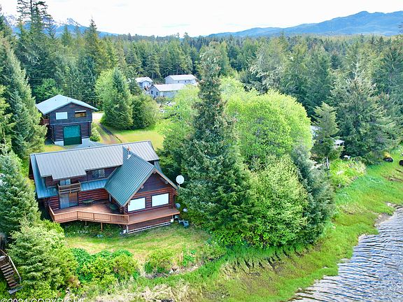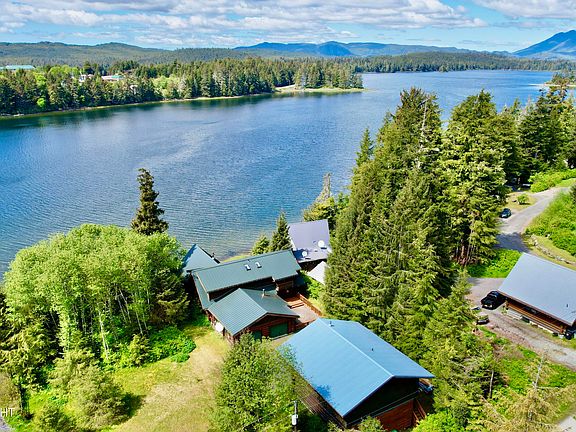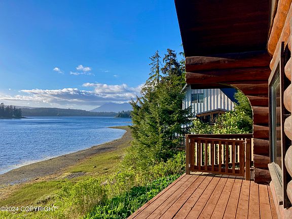 Experience Alaska at its best in this stunning waterfront log home property! It will delight you with a gorgeous 3500sf log home, a double car garage, a 1200sf apartment & a huge boat shop that fits a 27ft boat! Beautifully furnished & turn-key in a quiet area just minutes from all conveniences the adjacent waterfront lot is also available. No property tax & minutes from the boat dock & launch!Log cabin elegance greets you as you enter the front door, and lovely ocean views too. This is a truly beautiful and well kept home with a gorgeous floor plan & spacious rooms. You can enter the home either through the double garage or through the front door into the kitchen. Log arches or open space and views greet you making coming home a delightful experience! Nothing feels quite as cozy & comfortable as a true log home & every room exudes charm & delight. Enjoy cooking in the kitchen with comfortable & large commercial appliances and a kitchen island with views. Savor your breakfast in the adjacent dining area where glass sliding doors open onto the waterfront deck. Or retire to the second dining area for more formal occasions. The living room is a treasure with big windows to catch the light and views, but watch out, relax here here and you might not want to get up again! There is so much space on this lower level. Under the stairs is a large safe where you can store your hunting equipment. Down the hallway is a bathroom/ utility room, an office which could also be used as a 4th bedroom as well as a lot of storage space and extra cabinetry. Upstairs is also a delight with a light-filled landing, and once again those views! The master bedroom is very large, and comfortably holds two queen beds, has double closets and an ensuite bathroom with a skylight. The two other bedrooms both have private decks, one also with waterfront views. There is also another full bathroom on this level. If you prefer to be outdoors, then this home has you covered with a large waterfront deck, the perfect place to grill the day's catch! The home also has an attached double garage, so you can drive up and stay covered no matter what the weather. Behind the home is a 36' x 24' high boat garage that can fit a 27' boat. Brand new garage and boat shop doors are being installed soon for the lucky buyer! Above the boat shop is a 1200sf, 2 bedroom, 1 bathroom apartment. The apartment is a delight with a large living room and kitchen, and also has water views. Adjacent to the property is a vacant lot. This property is grassed and open with a cluster of trees at the waterfront. The buyer of the home has first option at buying this property for $149,000. If you would like a little more space, you can have it here. The location of the property is also special. Klawock is central to Prince of Wales island, the crossroads for all the towns and the perfect base for all your Prince of Wales adventures! The home is located on a quiet street in Klawock the property is very private from the road. Yet all conveniences are very close. Klawock has a small shopping mall, a medical center, a school and last but certainly not least, a boat harbor and boat launch. Your fishing adventures are only a few minutes drive away! This property is not suitable for docking as the bay gets quite shallow at low tide. The larger town of Craig is only a 10-15 minute drive away. This is a truly beautiful property that feels very wild and Alaskan yet is luxurious and comfortable and all conveniences just minutes away. Enjoy gorgeous sunsets & ocean views from your own private grounds. Convenient to hunting & fishing, all your Alaskan dreams are at your fingertips, right here.... Love life more in this simply magical, waterfront Alaskan log home property!